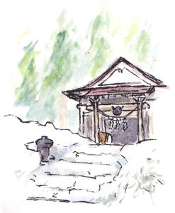 神社の入り口にも連休中はまだ雪が結構残ってました。
