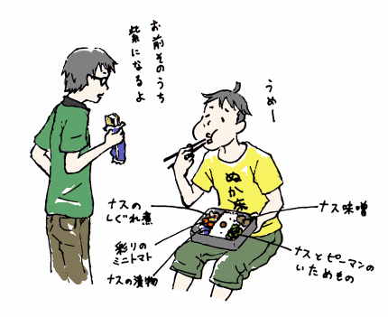 おかげで弁当のおかずが上の絵のごとくナスづくしになったことがあった。