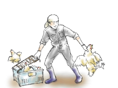 先日、食肉用のブロイラーを出荷する、「鳥出し」と呼ばれる作業を手伝わせてもらいました。